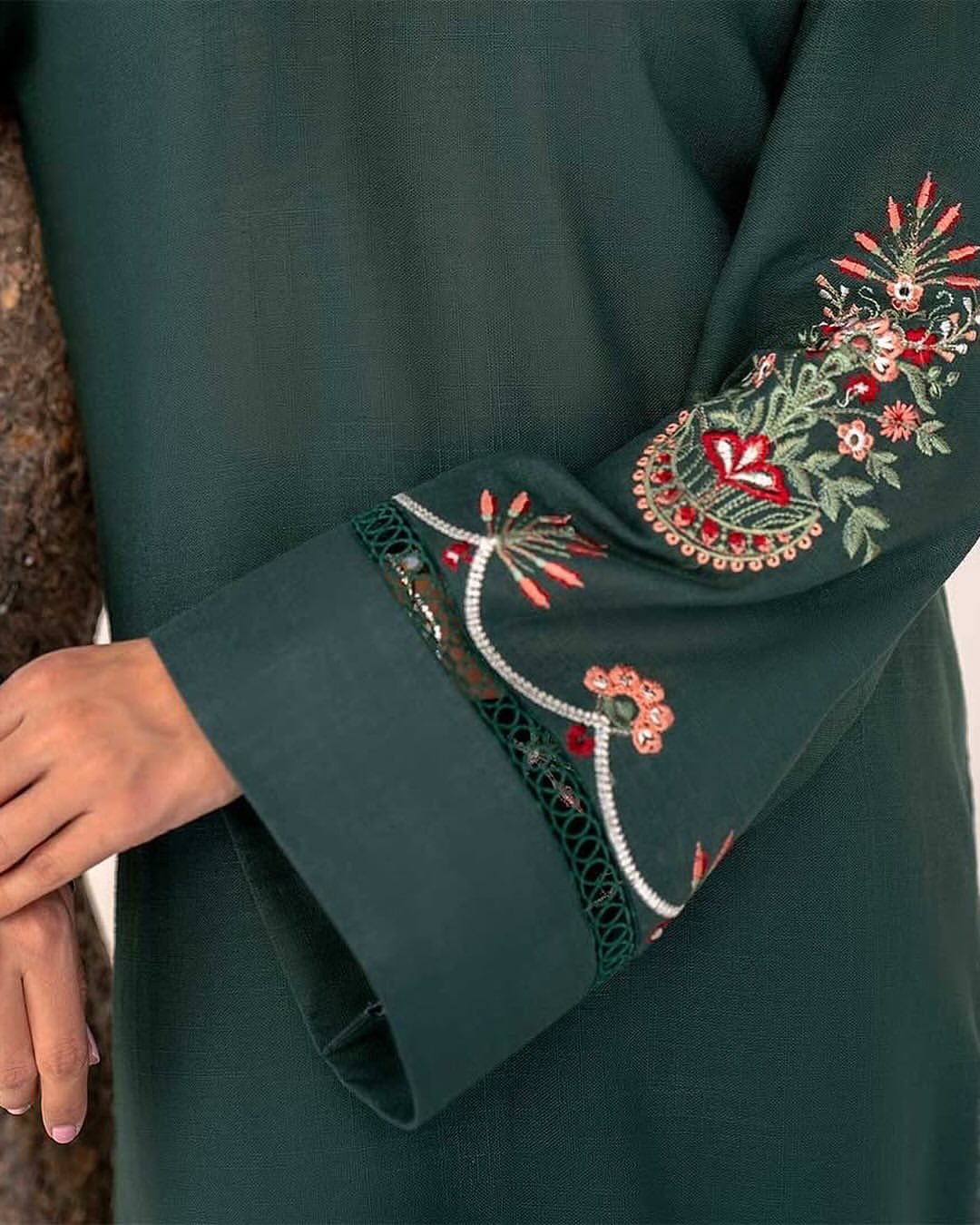 - Embroidered